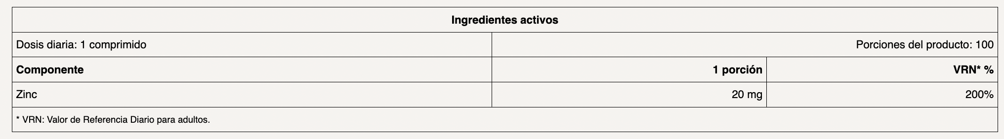 Zinc 20 mg 100 capsulas